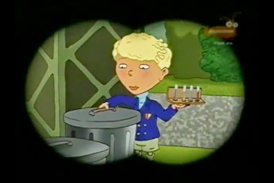 Sometime later at the Griplings', Mrs. Gripling goes absolutely bonkers wondering where Blake's baby blanket is. Blake doesn't even try to act concerned about it, which, doesn't make Mrs. Gripling the least bit suspicious. She tells Blake that his blanket was a family heirloom that will be passed down to his child if he ever manages to attract a female with his personality. Uh-oh. But how did he not know that already?